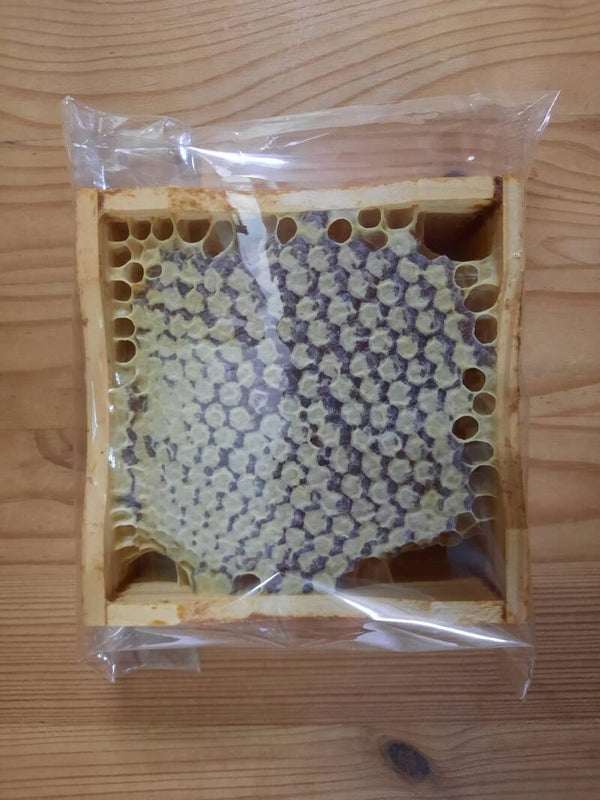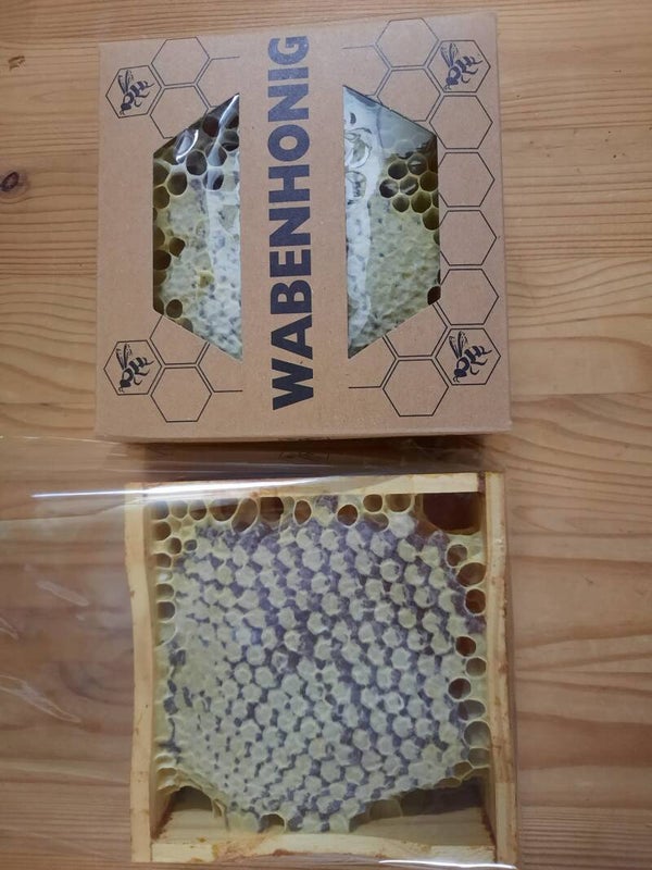 Unser Wabenhonig ist ein echtes Naturprodukt – direkt aus dem Bienenstock, unverarbeitet und rein. Die Bienen füllen die zarten Waben mit goldenem Honig, der den Geschmack von Sommerblüten, Sonne und Natur in sich trägt. Beim Kauen der Wabe entfaltet sich das volle Aroma, begleitet vom feinen, natürlichen Wachs – ein unvergleichliches Geschmackserlebnis.